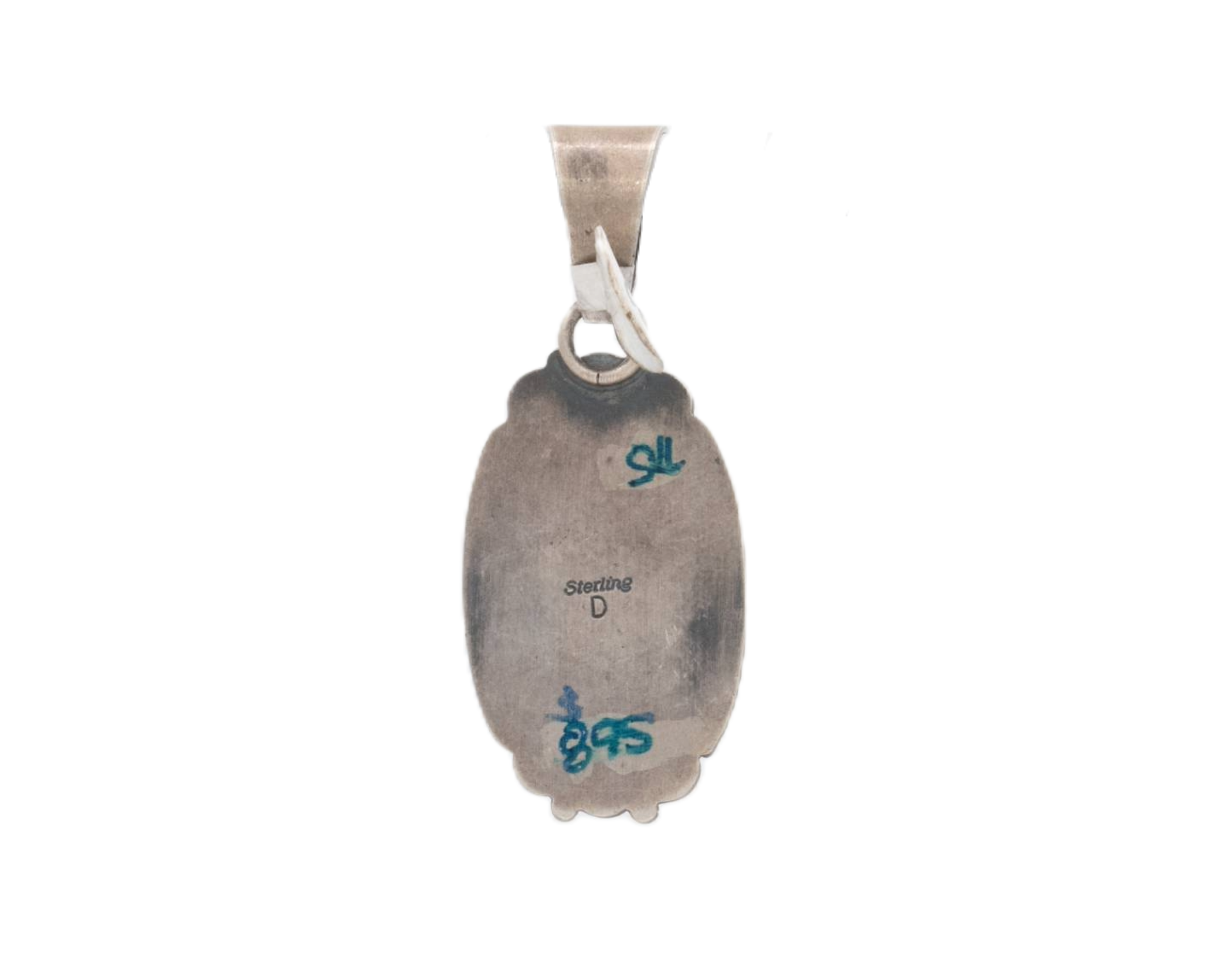 This handmade pendant features Egyptian Turquoise wrapped in gleaming a sterling silver setting. Twisted wire details and carefully cut designs wrap around the bold turquoise stone and makes the stunning Egyptian Turquoise pop. With its bright silver and blue, and rich browns, this pendant is full of natural color elevated by beautiful artistry.
