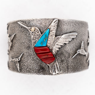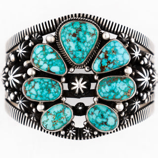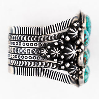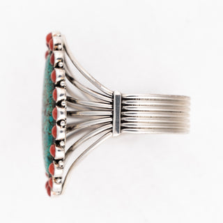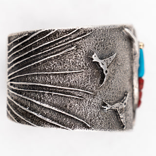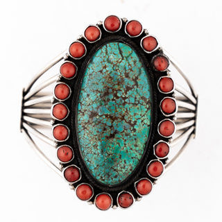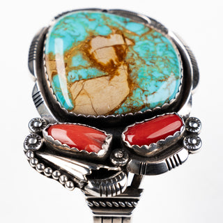 New Lander Turquoise, Kingman Turquoise, & Coral Inlay Cuff | Causandra Dukepoo