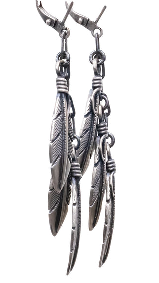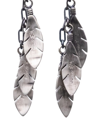 This set of earrings were crafted by Kewa and Pueblo artist Raymond Coriz. Entirely made of sterling silver, this stunning set features hand-stamped designs that compose the fine details that bring each feather to life. With their gleaming polish and streamlined profile, they are truly a work of art that will move with their wearer like the elegant feathers they emulate. This is a set for anyone who appreciates artistry.