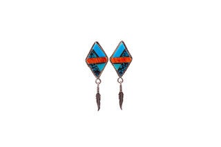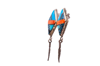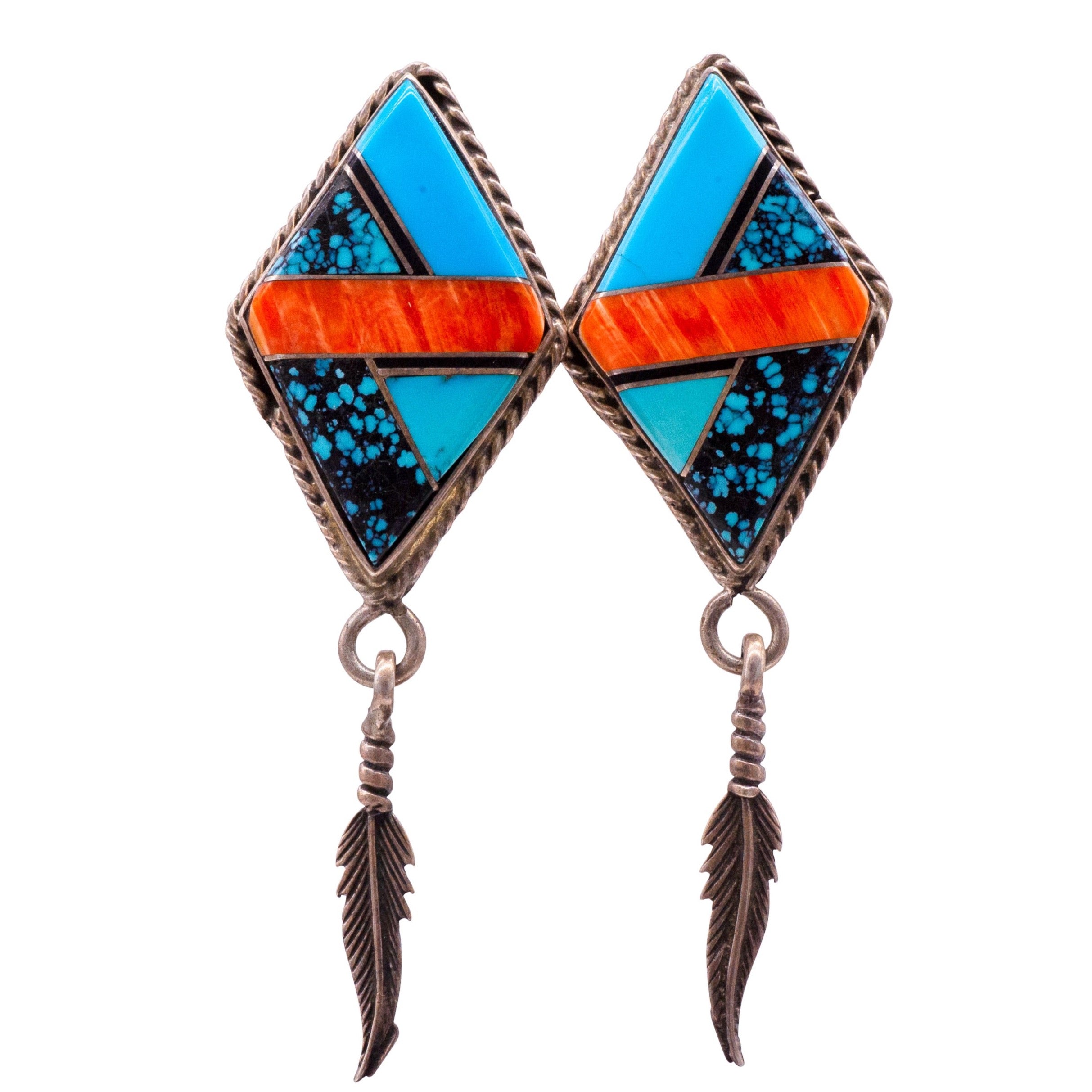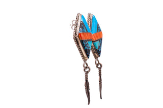 Sterling silver with orange spiny oyster shell, Sleeping Beauty and New Lander turquoise, "VY" hallmark