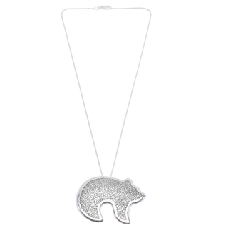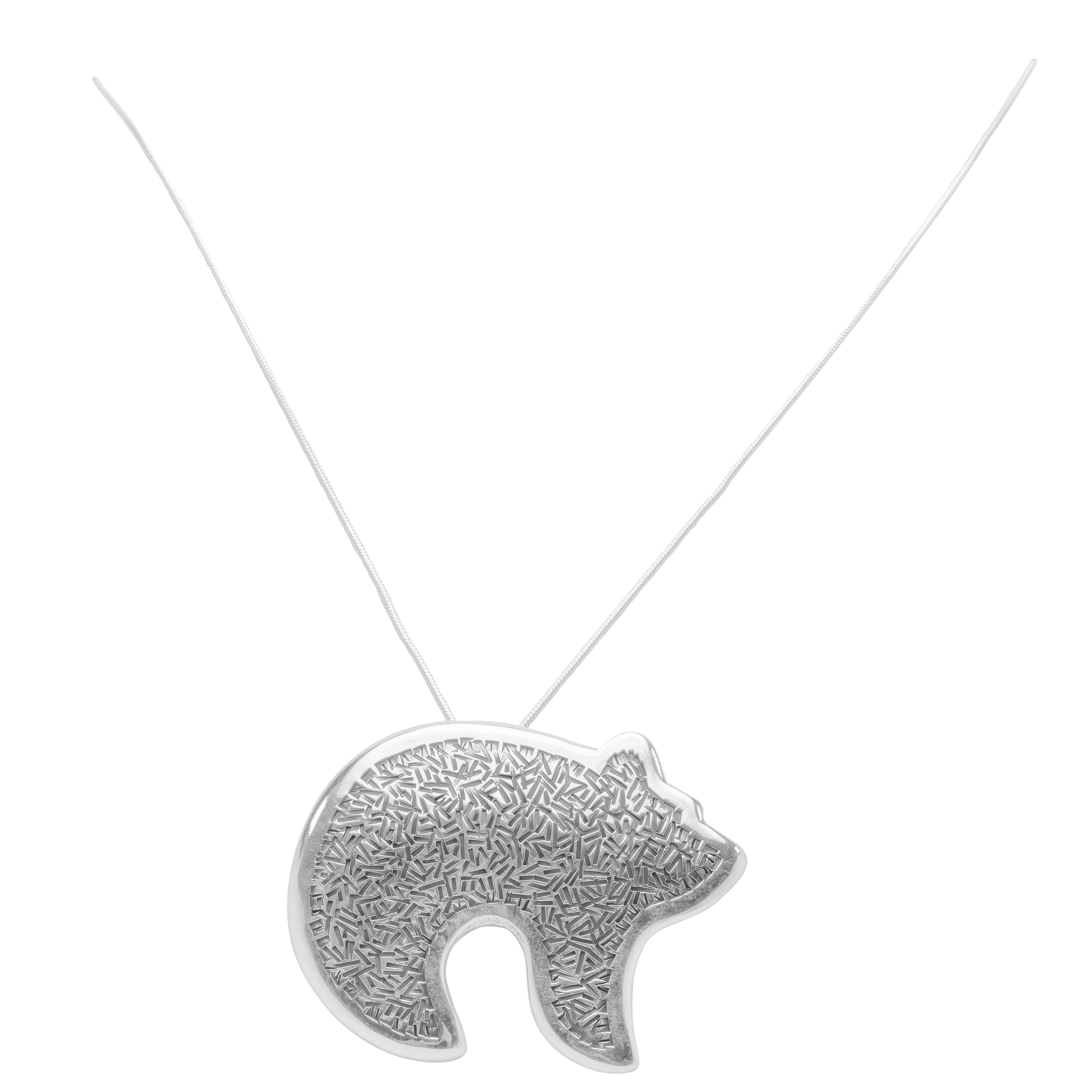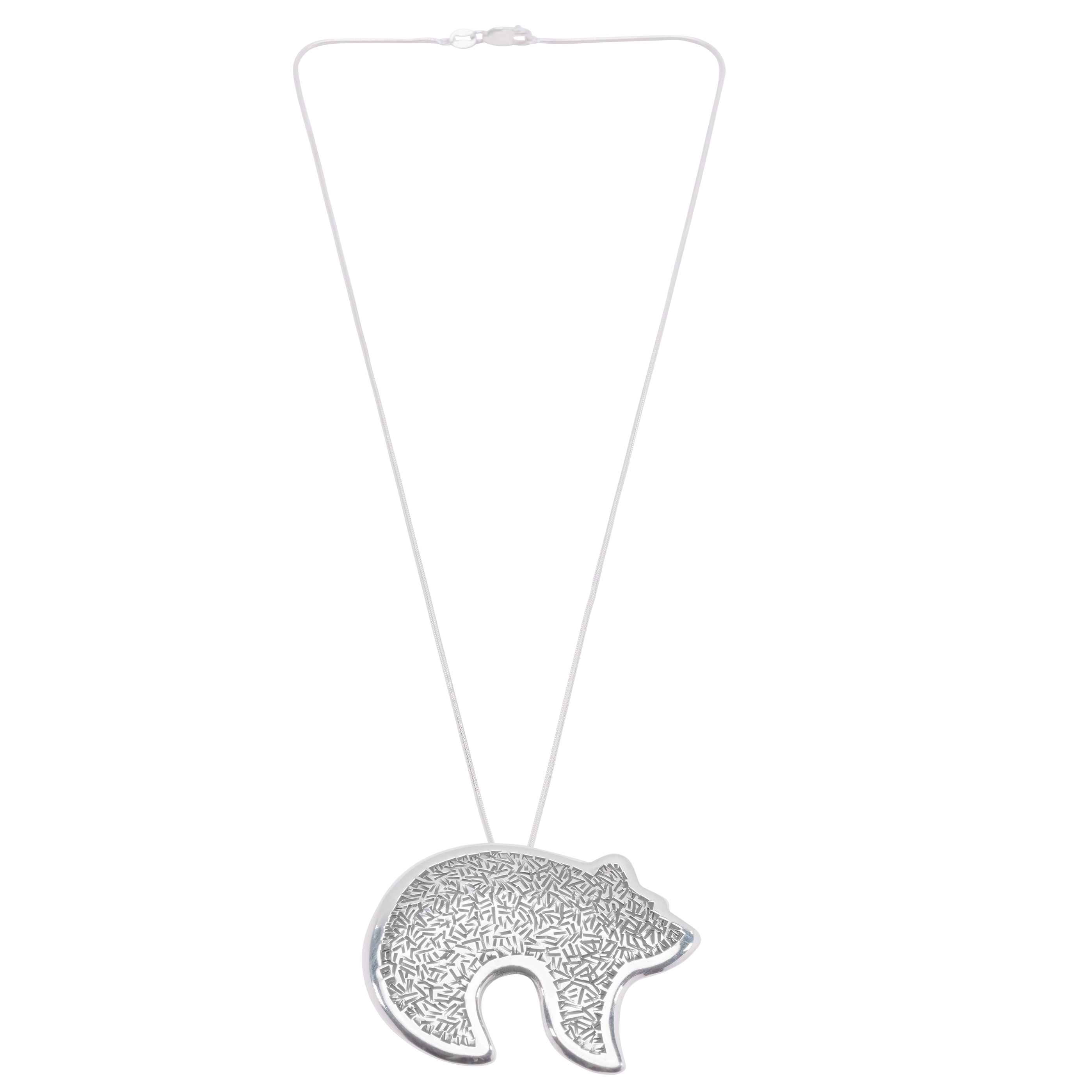 Enhance your style with the timeless elegance of this sterling silver hand-stamped bear pendant, a creation by renowned Navajo artisan Norbert Peshlakai. This pendant exudes simplicity and grace, featuring a beautifully hand-stamped bear design that pays homage to Native American symbolism. Suspended delicately on a thin chain, it's a versatile accessory that effortlessly complements any attire.