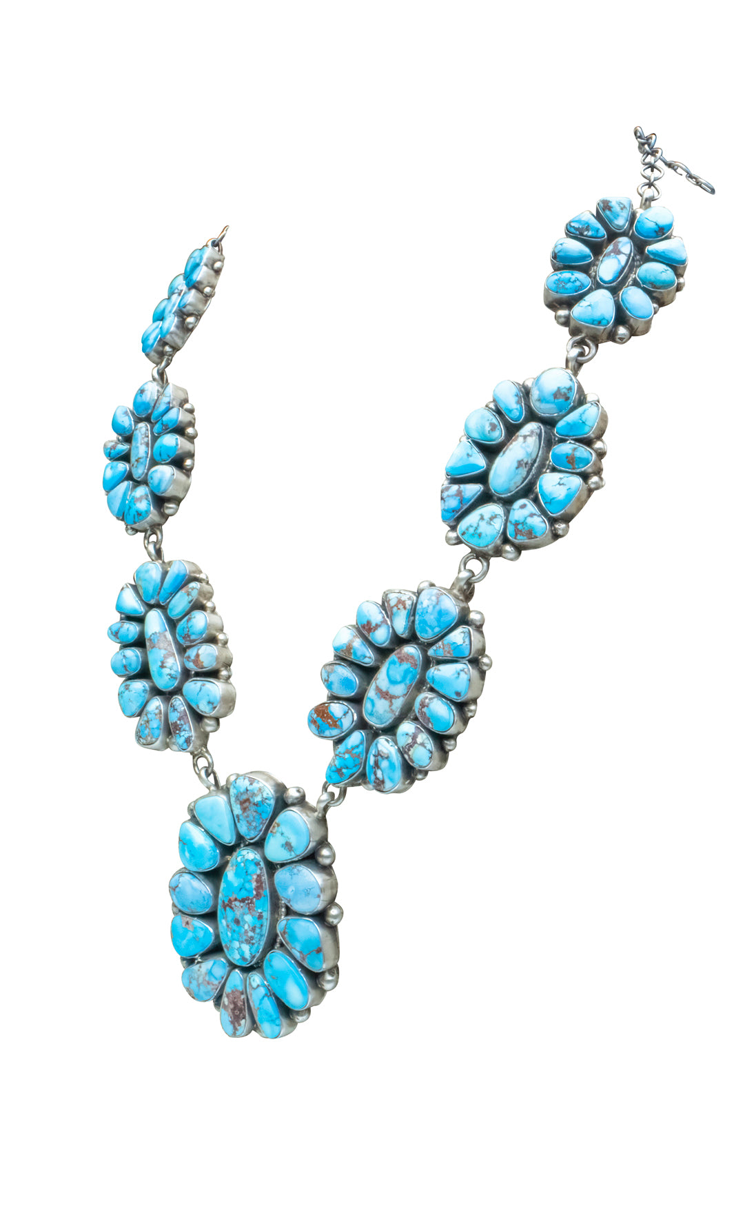 Sterling silver with Golden Hills turquoise necklace & earrings set