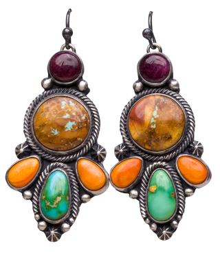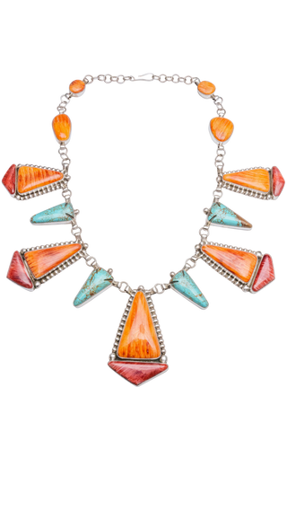Jet, Spiny Oyster Shell, Dolomite, & Sleeping Beauty Turquoise Butterfly Necklace | Zuni Handmade