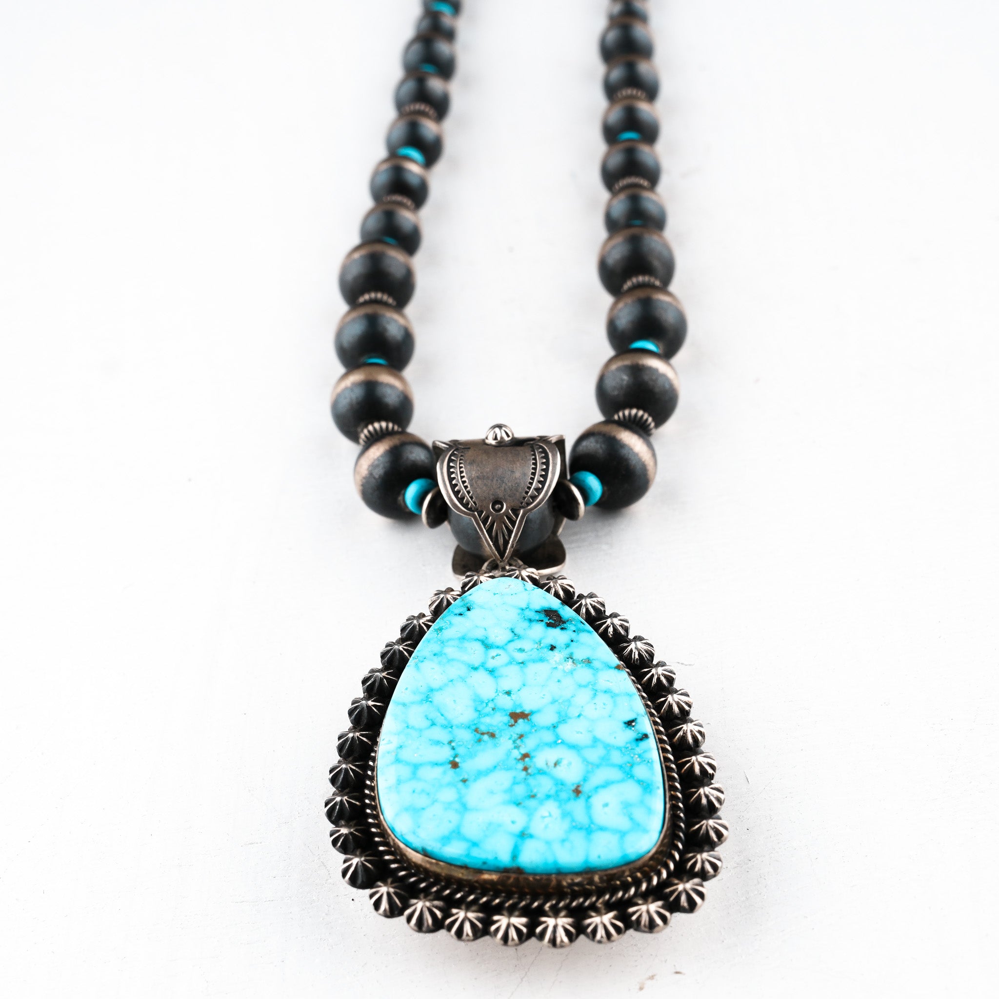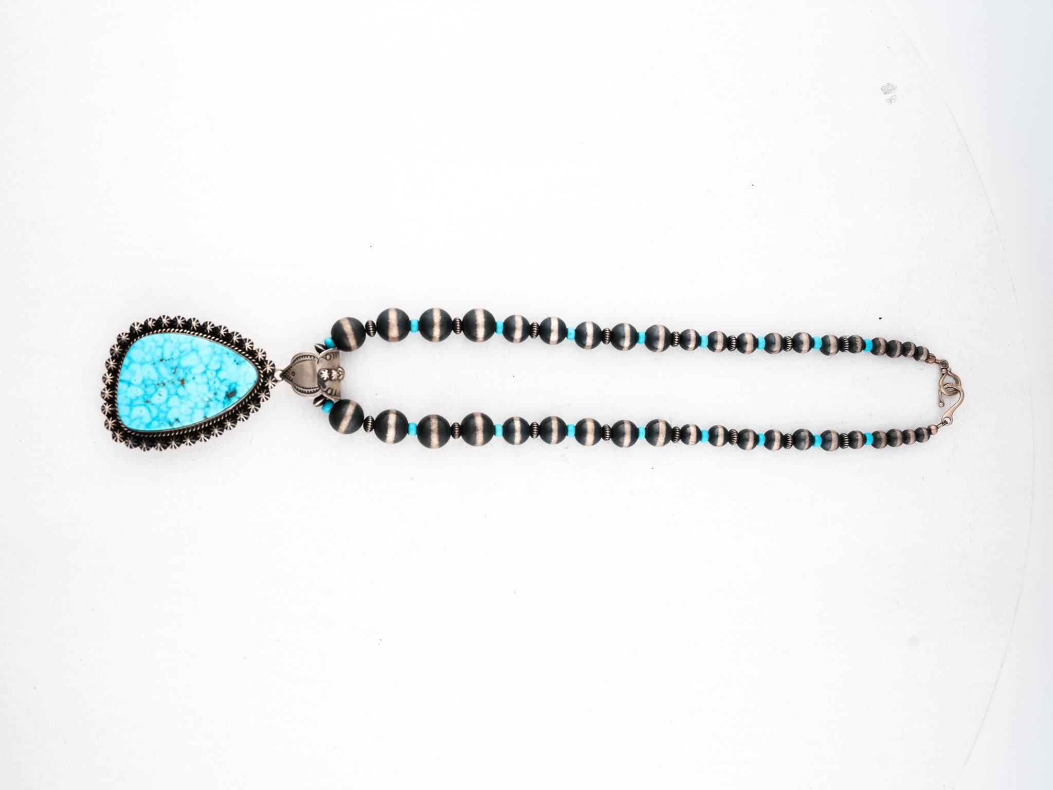 Waterweb Kingman Turquoise Pendant & Navajo Pearl Necklace Set | Happy Piasso