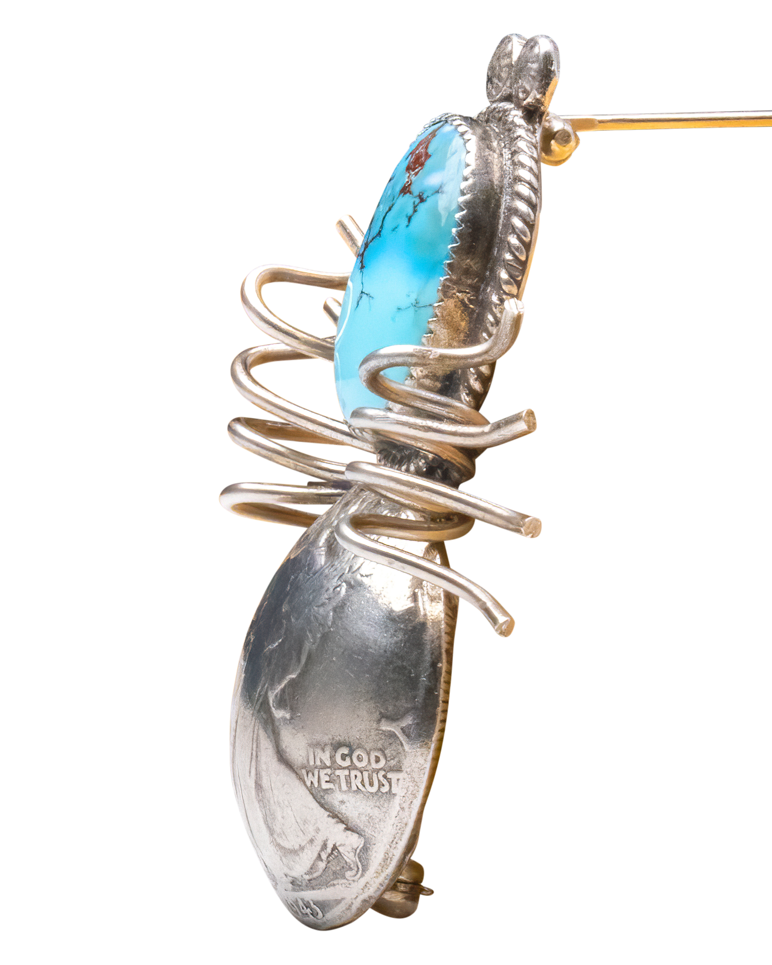 Sterling silver with Golden Hills turquoise spider pin