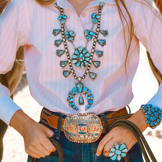 Waterweb Kingman Turquoise Pendant & Navajo Pearl Necklace Set | Happy Piasso