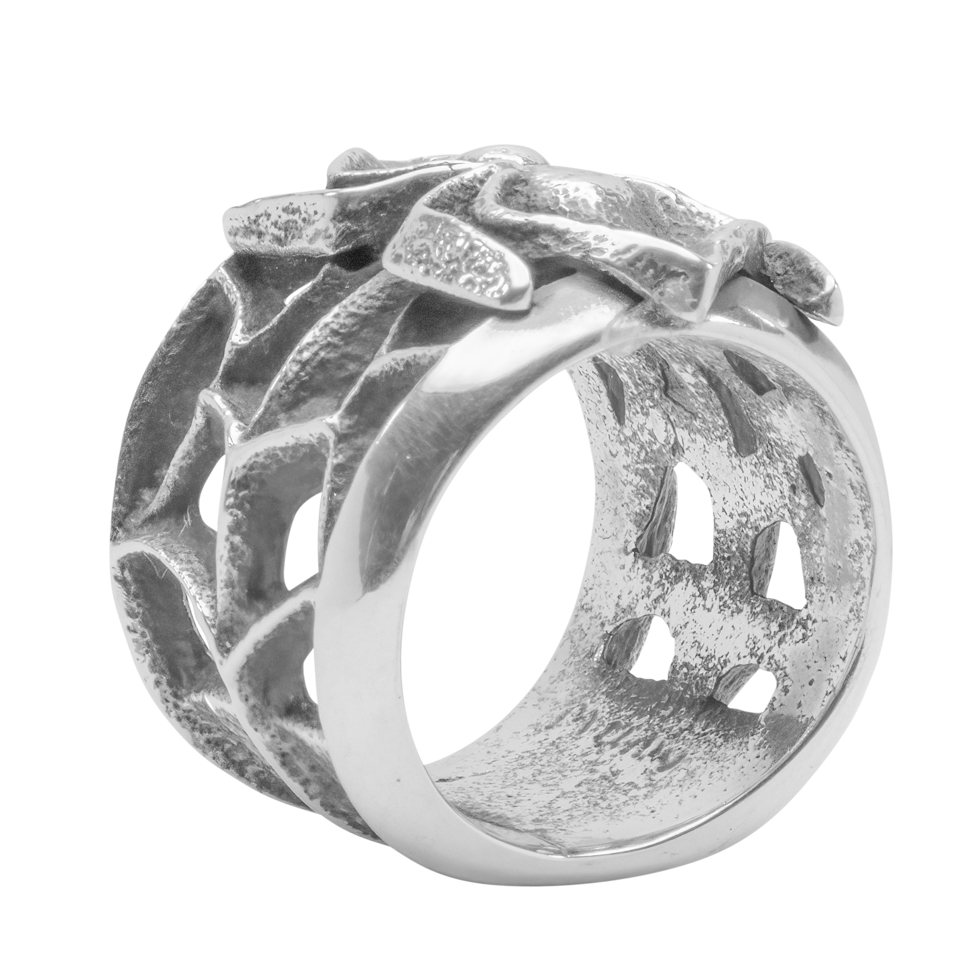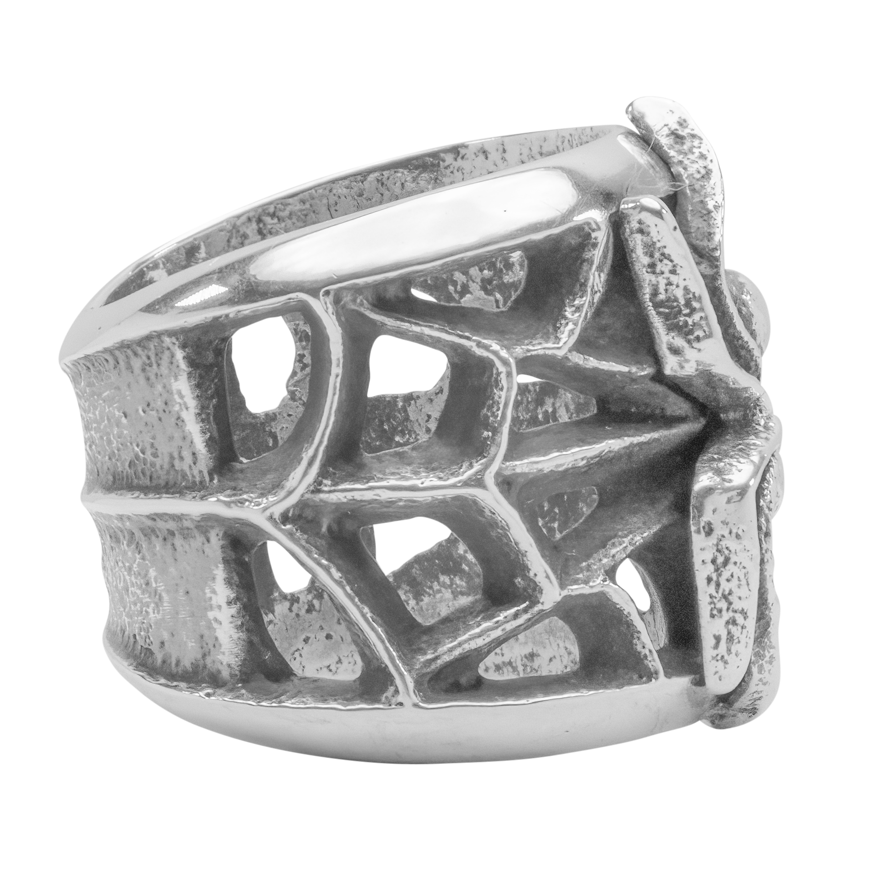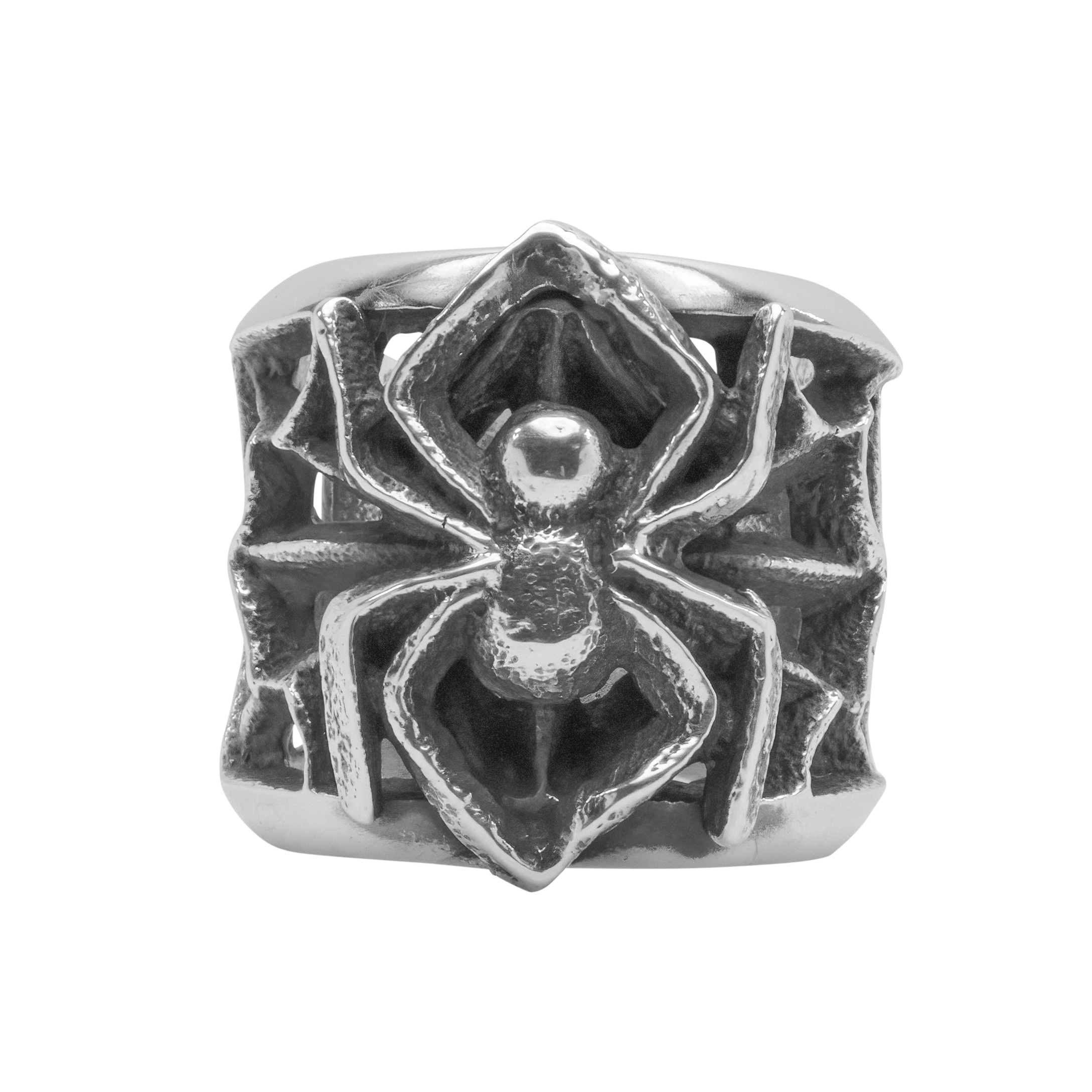 Craftsmanship and creativity seamlessly unite in this enchanting Tufa cast ring created by renowned Navajo artisan Monty Claw. Crafted with intricate precision, this piece features a striking spider and web design made of solid sterling silver. Express your unique style with this ring – a true conversation starter.
