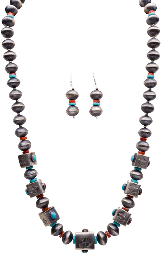 Carico Lake Turquoise Squash Blossom Necklace & Earring Set | Nila Johnson