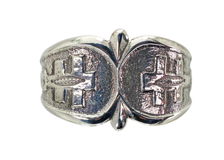 Elegance meets earthiness in this cuff expertly crafted by Robert Chee. It is truly a testament to the enduring beauty of tufa craftsmanship. In a balance of subtle and striking shapes and forms, this piece guide's the viewer's eye along the cuff's surface whose earthy texture, contrasted with the polished finish of the raised designs, creates a play of light and shadow that enchants and intrigues.