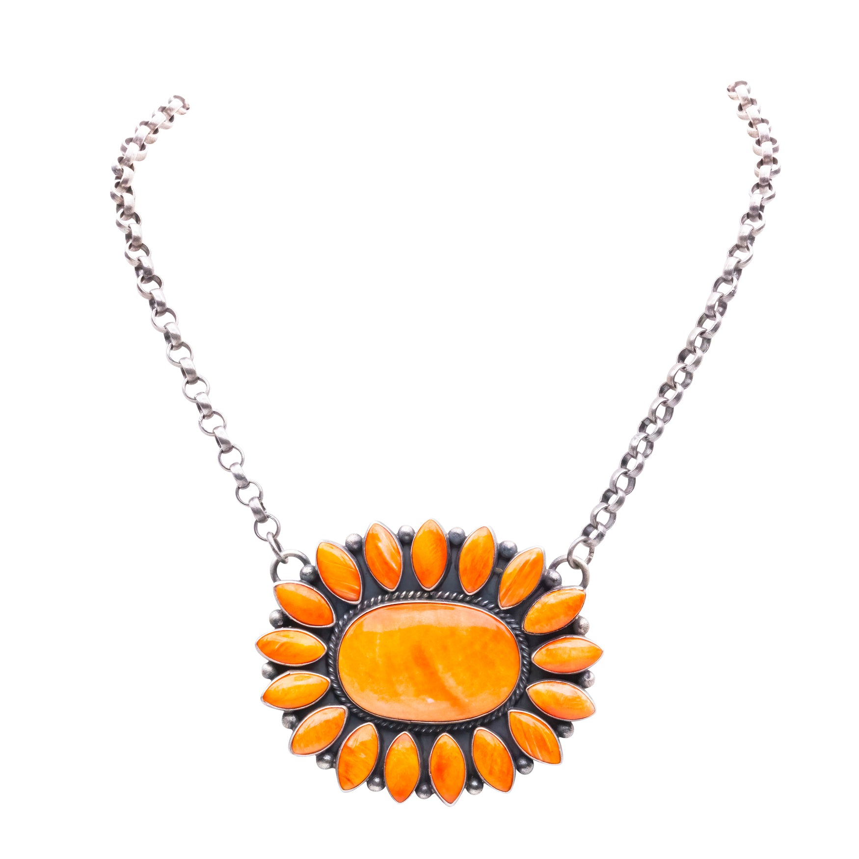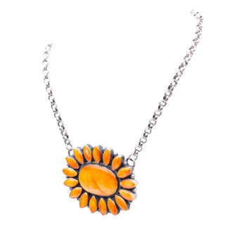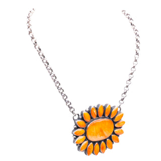 Sterling silver with orange spiny oyster shell necklace
