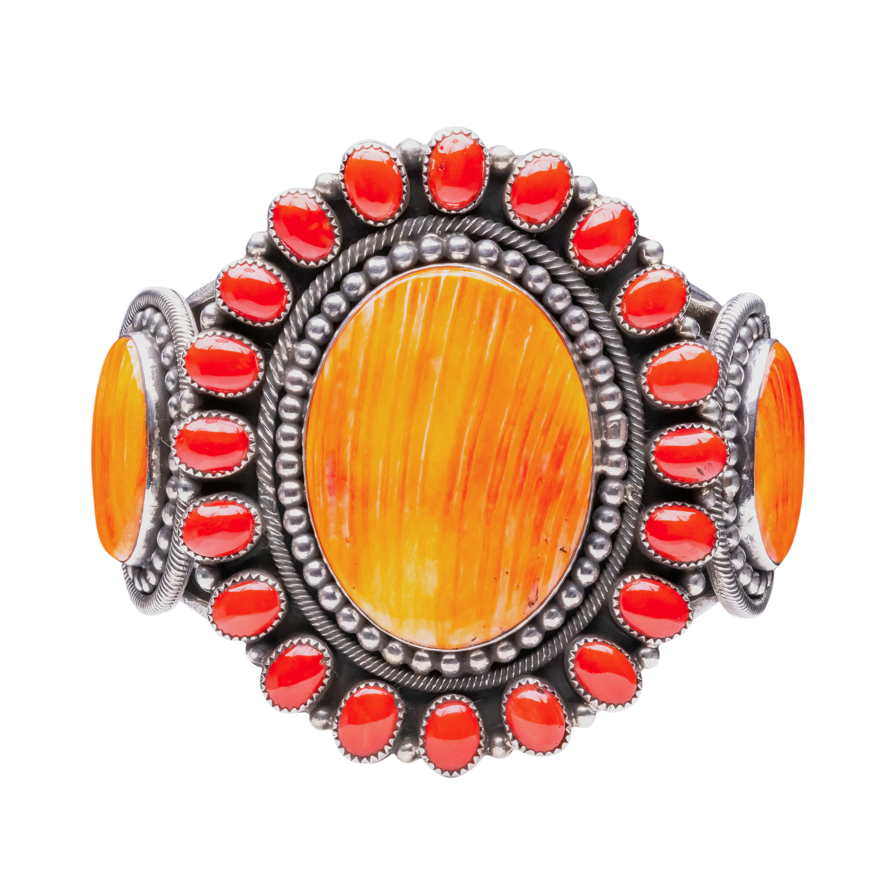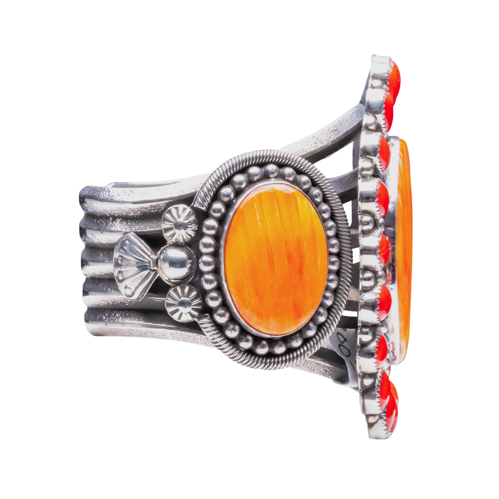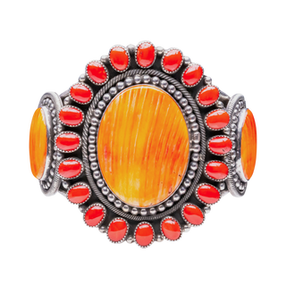 Sterling silver with orange spiny oyster shell and coral bracelet