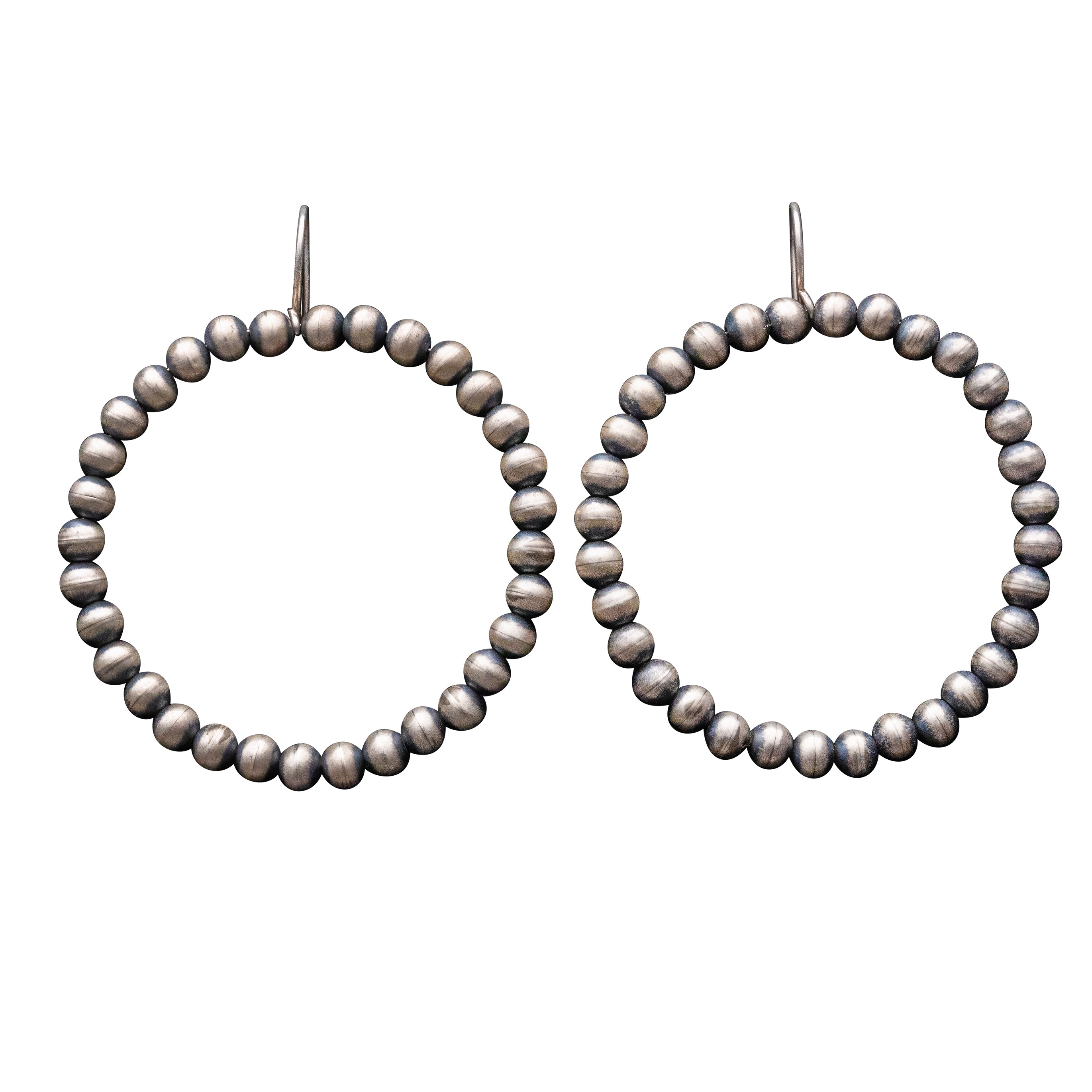 Embrace timeless elegance with these artisan-made hoop earrings adorned with Navajo pearls. Handcrafted with precision and care, each hoop exudes Southwest charm and sophistication. The Navajo pearls add a touch of traditional craftsmanship, while the hoop design offers versatility for any occasion. Elevate your style with these exquisite hoop earrings, a true testament to artisanal excellence.