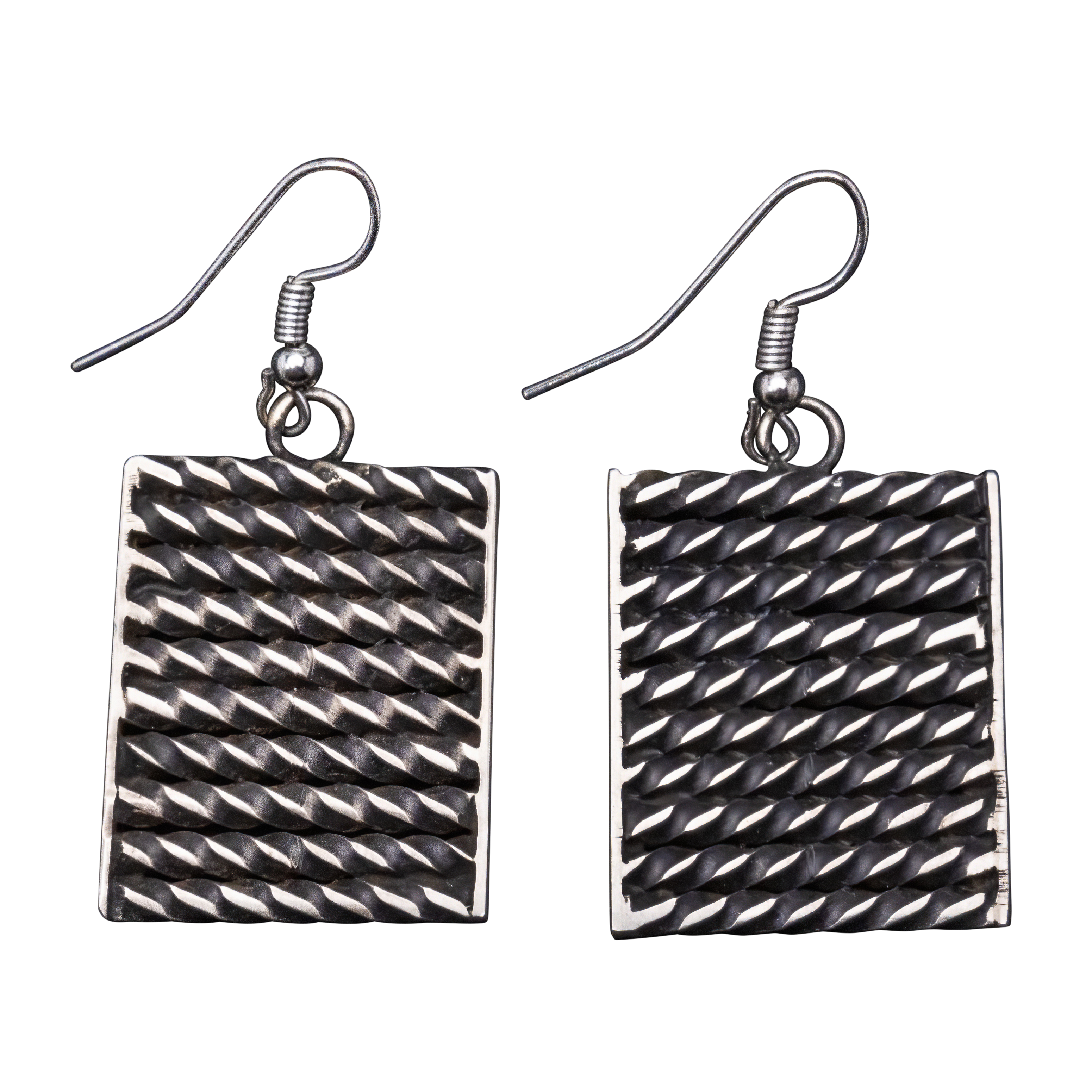 Introducing a pair of sterling silver earrings handcrafted by artist Leander Tahe, these earrings are a beautiful fusion of simplicity and elegance. With a sleek square shape, each earring is adorned with a delicate yet intricate line pattern that adds a touch of sophistication to the design. Meticulously crafted with sterling silver, these earrings exude timeless charm and versatility, perfect for adding a subtle statement to any ensemble. Elevate your style with these exquisite earrings, a testament to the craftsmanship and artistic vision of Leander Tahe.