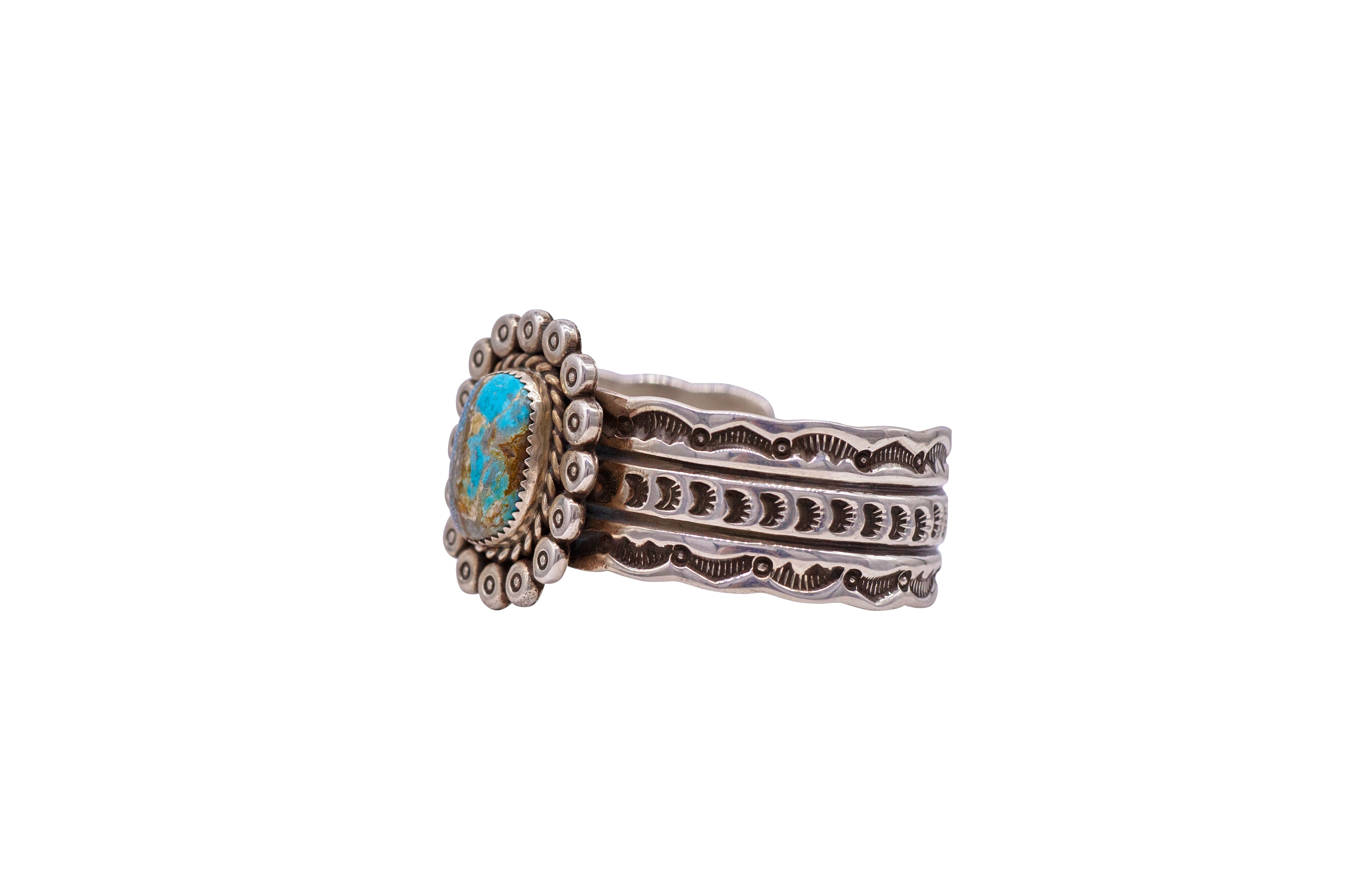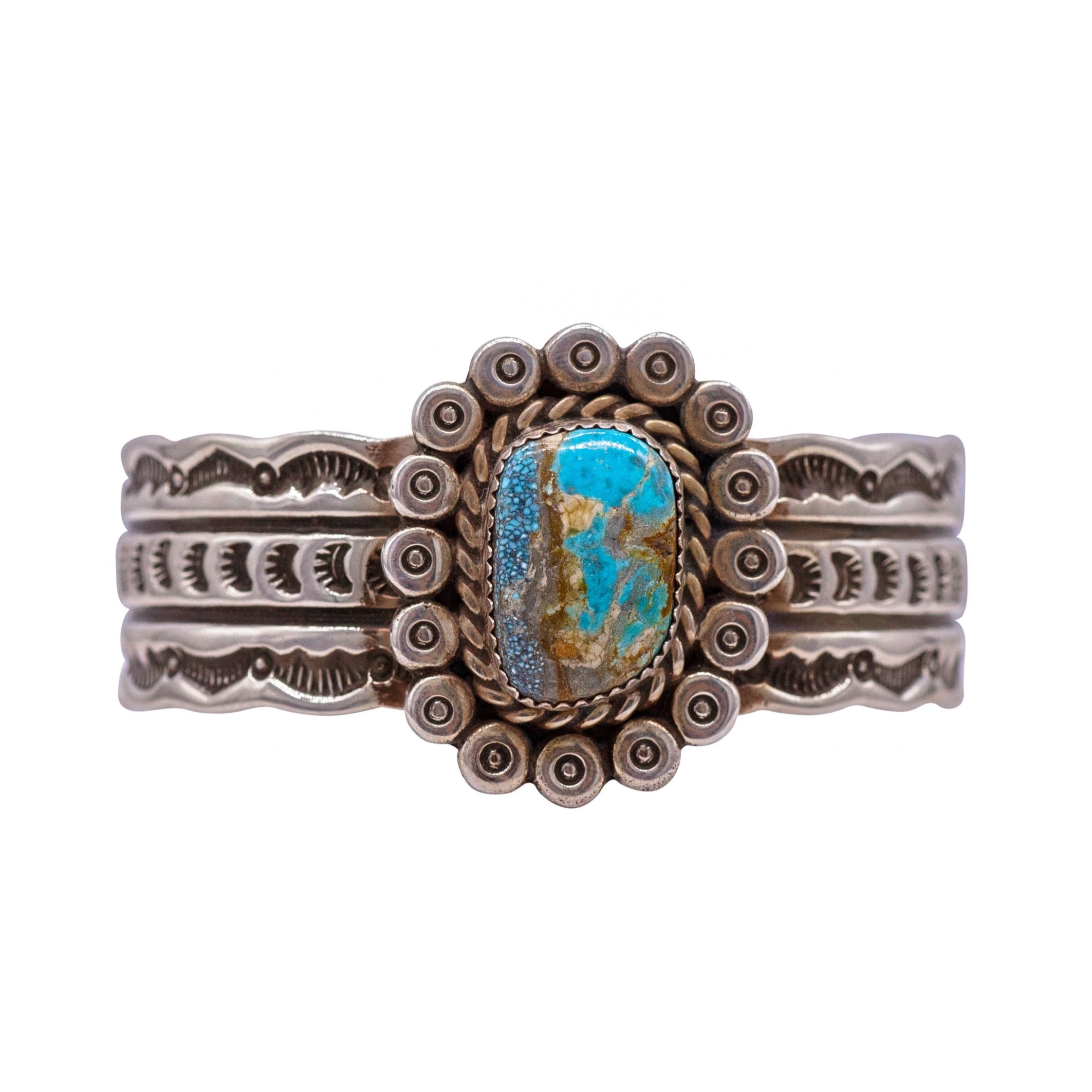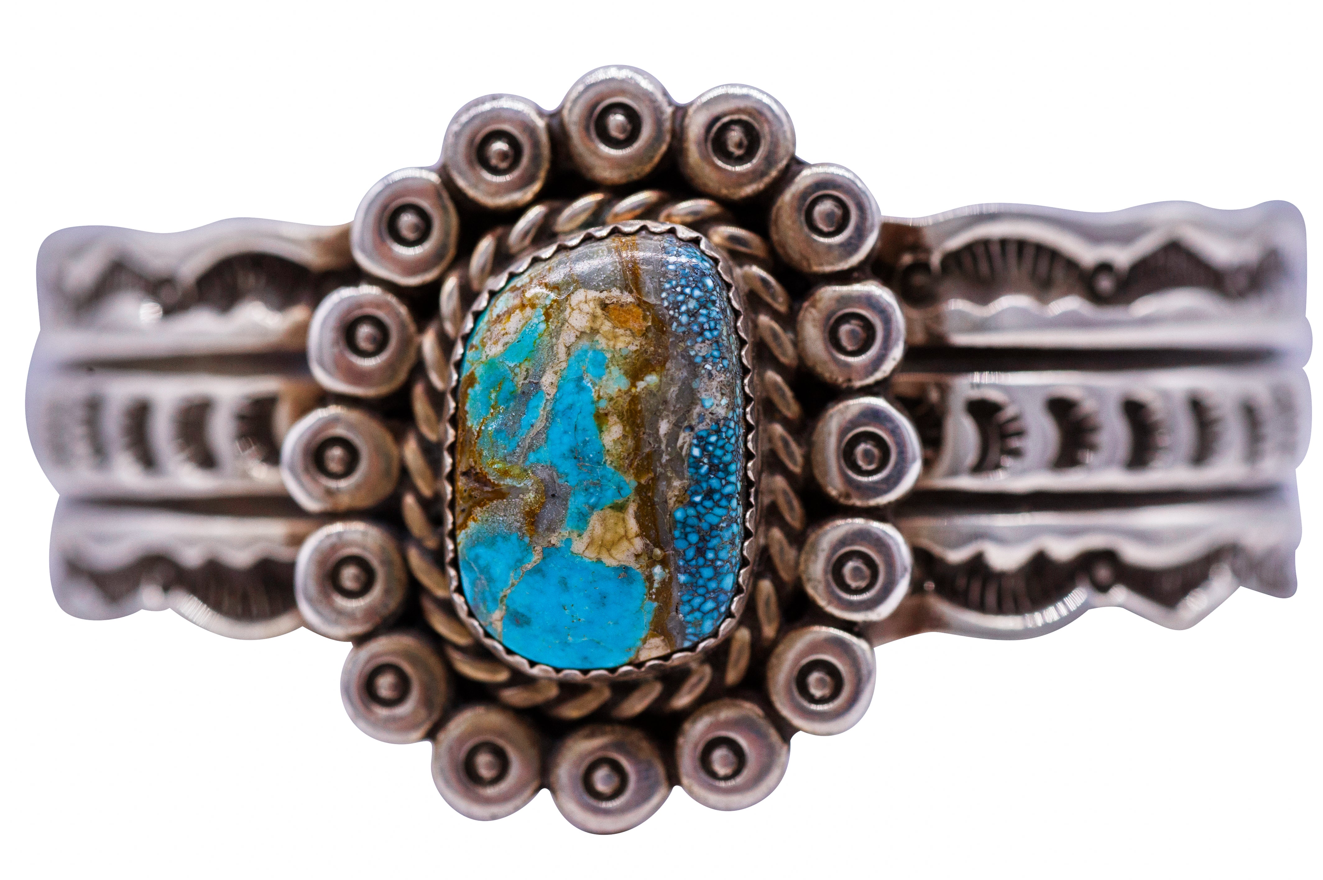Sterling silver with Royston turquoise cuff, "EBC" hallmark