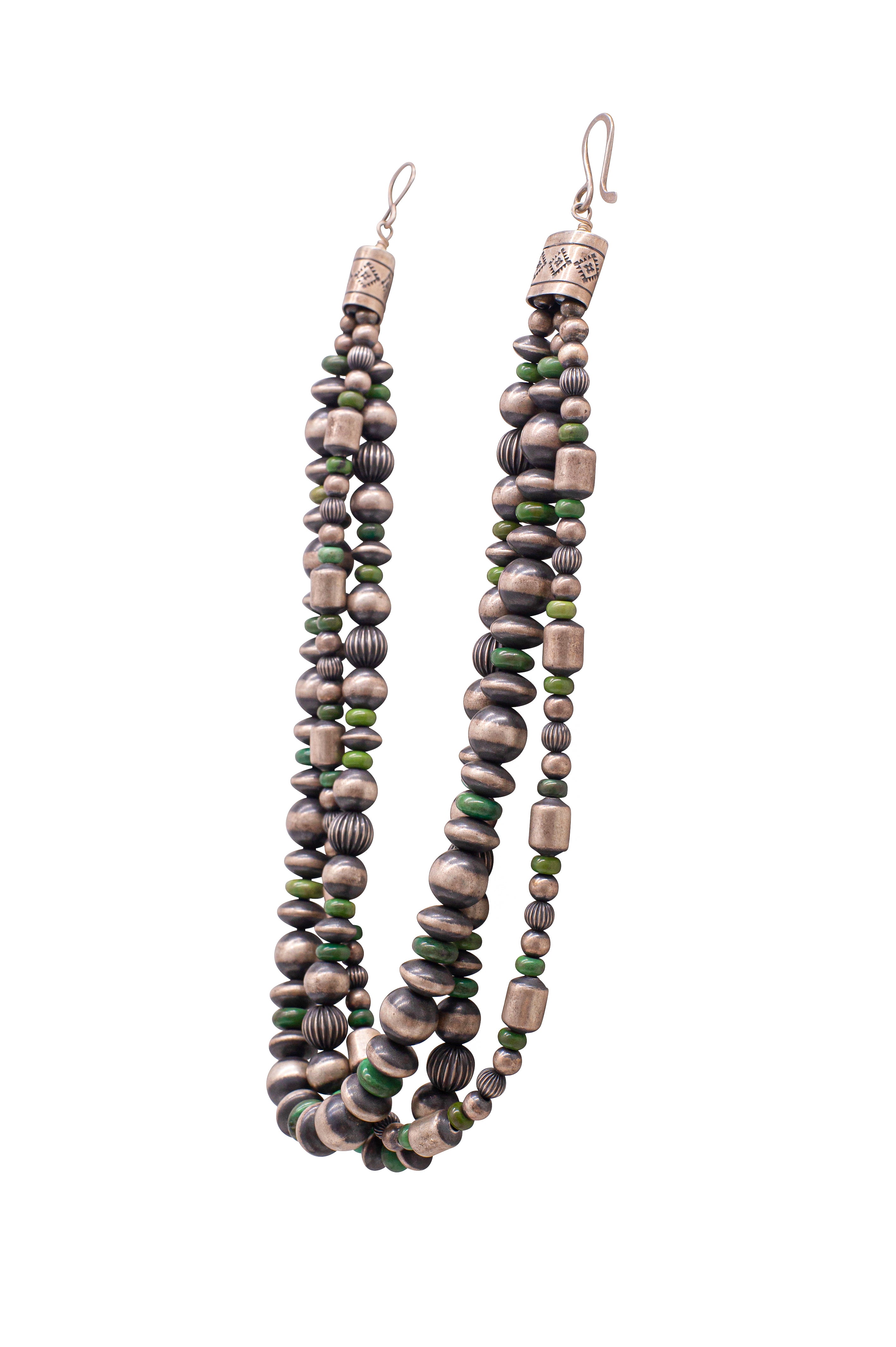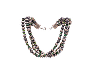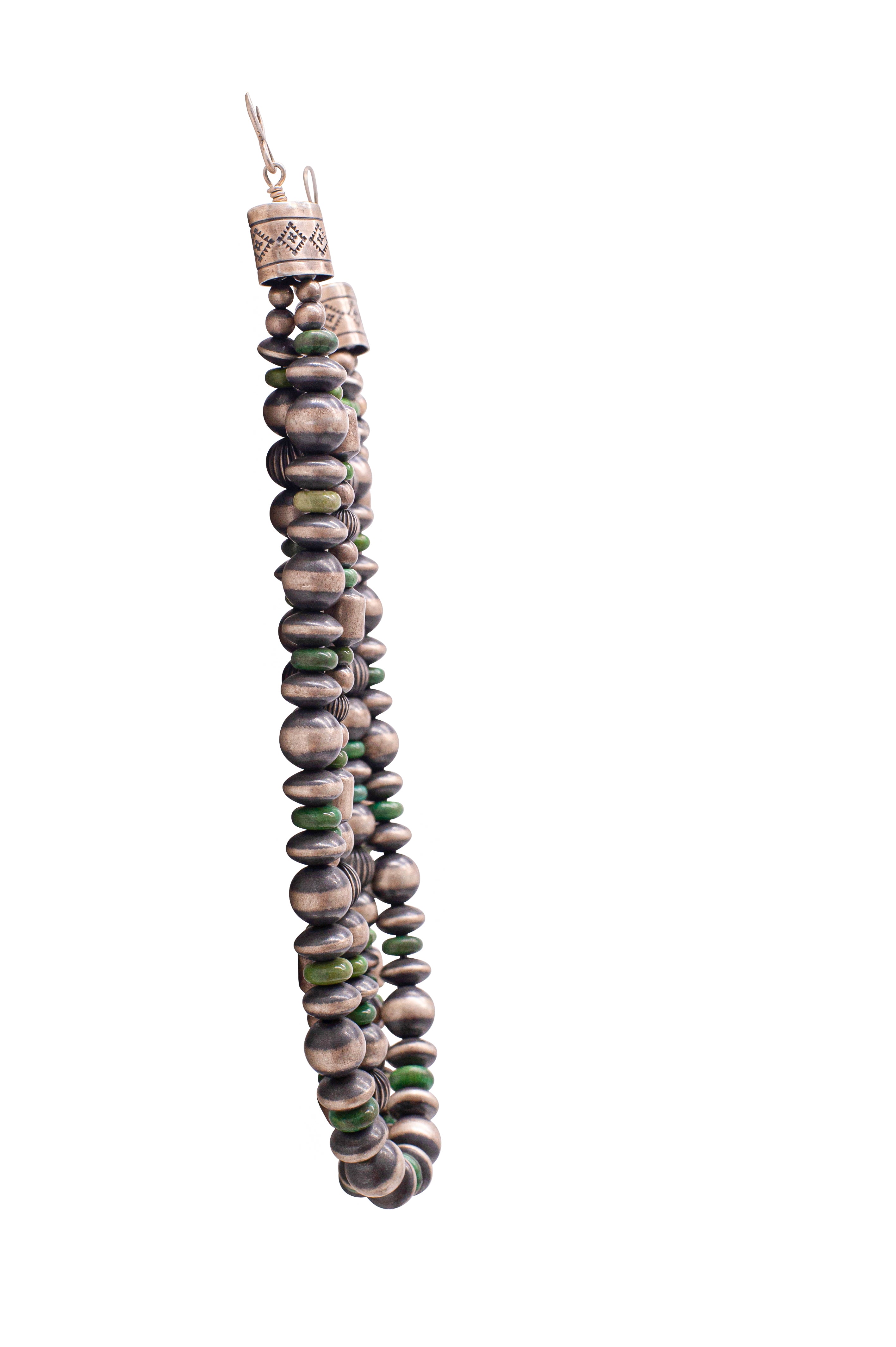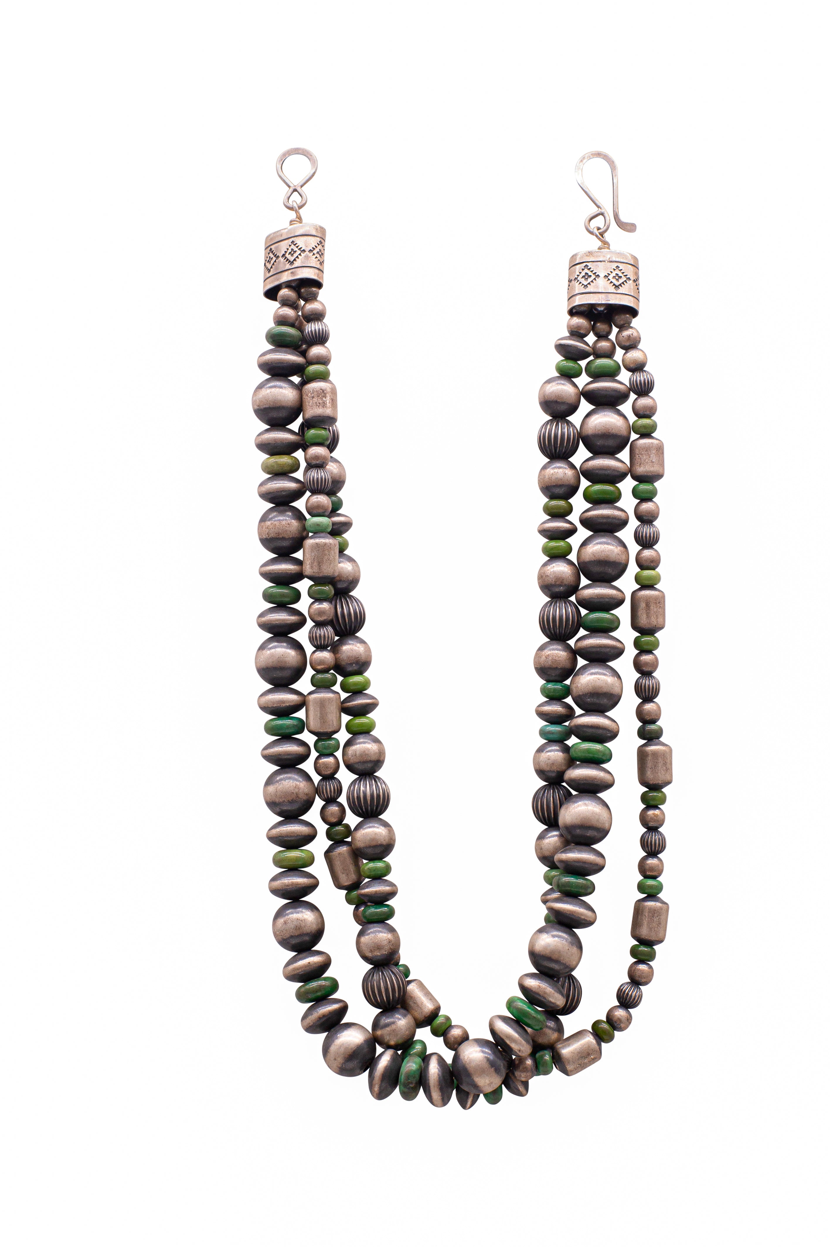 Three Strand Sterling Silver Necklace made with Navajo Pearls and Royston Turquoise