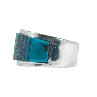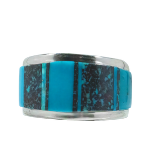 Embrace the epitome of contemporary Southwestern elegance with this tasteful sterling silver ring, meticulously handcrafted by renowned Navajo silversmith Tommy Jackson. The exquisite design features expertly inlaid Sleeping Beauty turquoise, renowned for its striking blue hue, set in a highly polished sterling silver band. One of the most sought-after gemstones, the Sleeping Beauty turquoise mine closed permanently in 2012 causing its value to triple over the past decade.