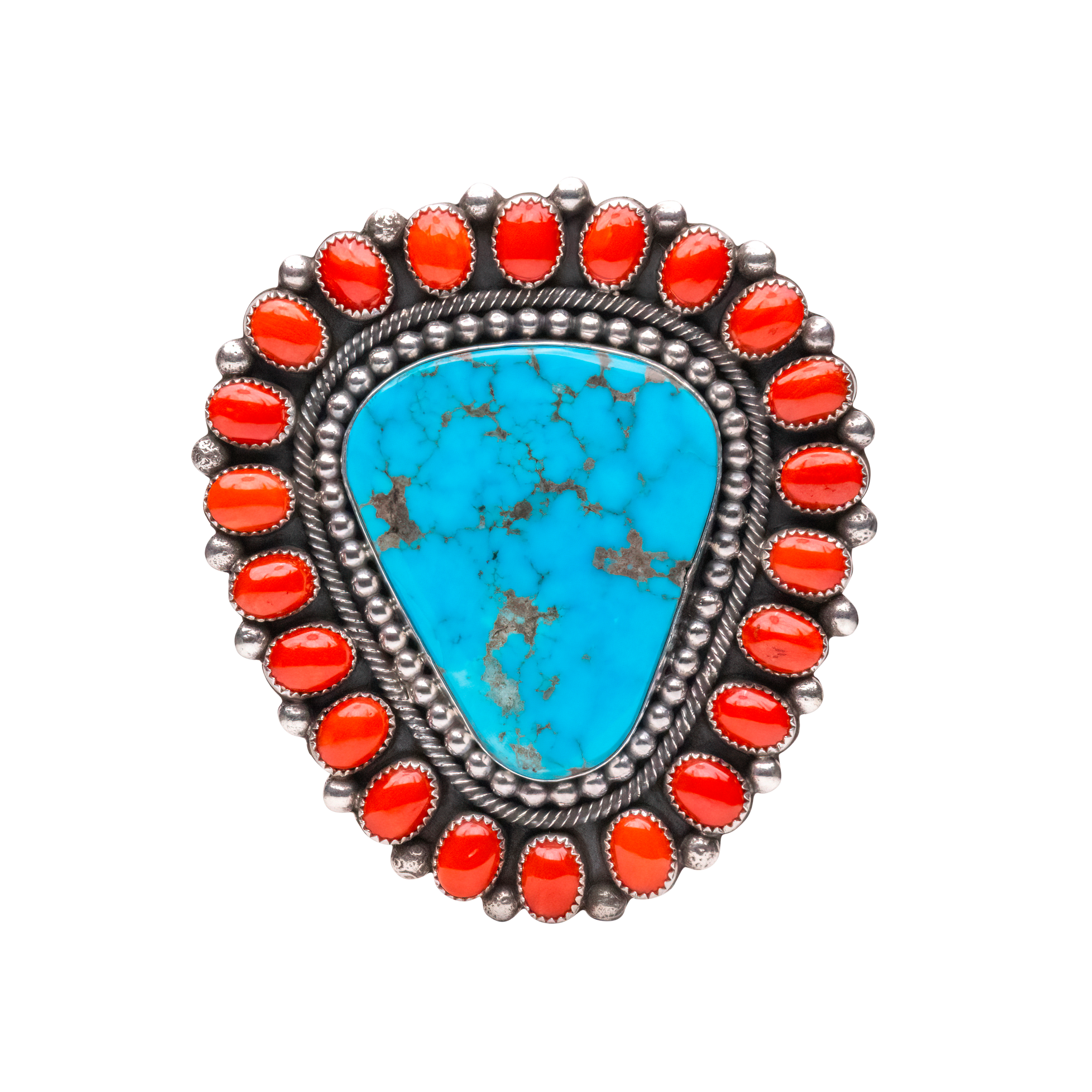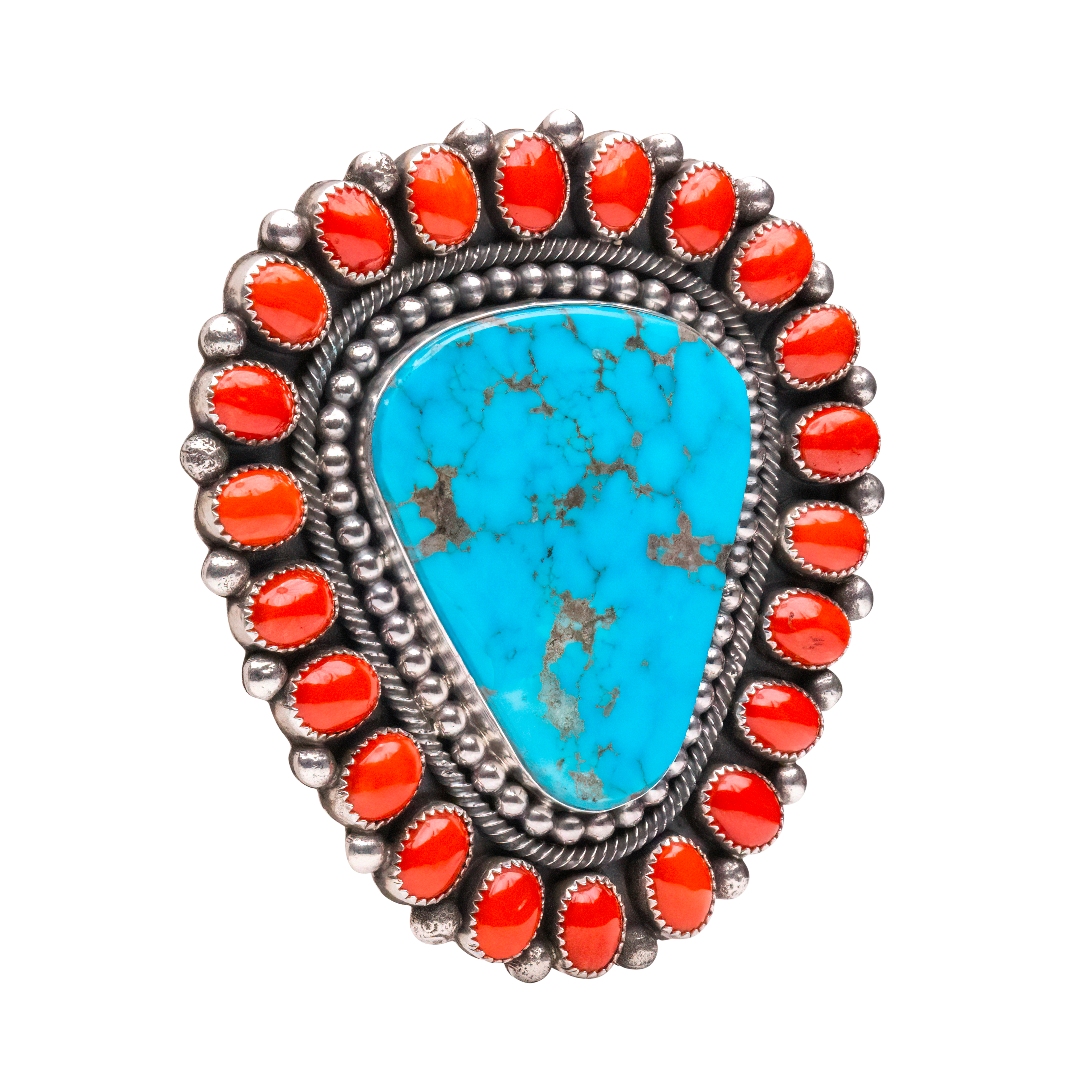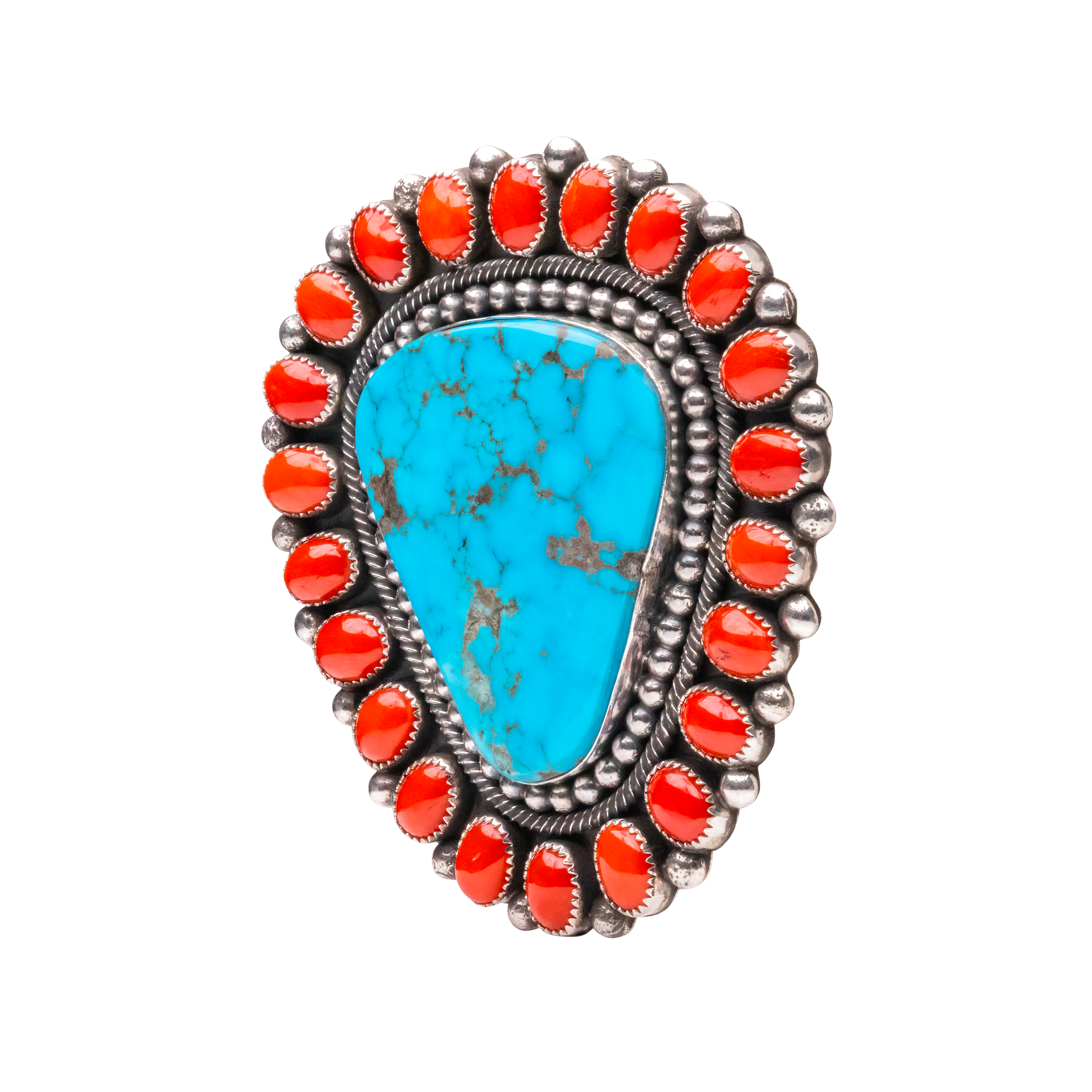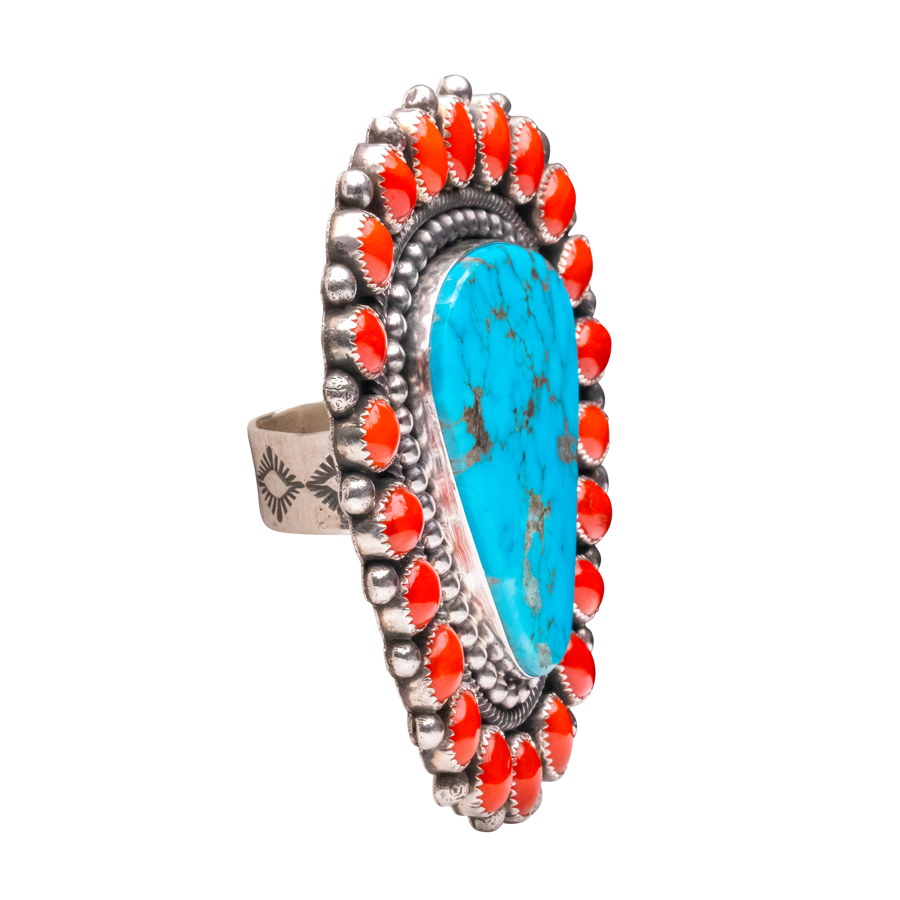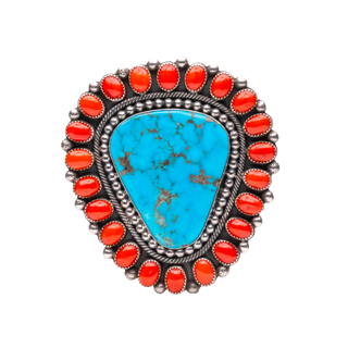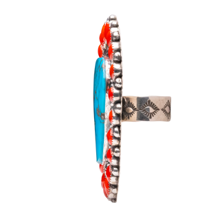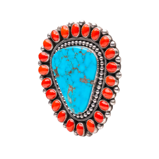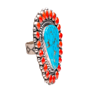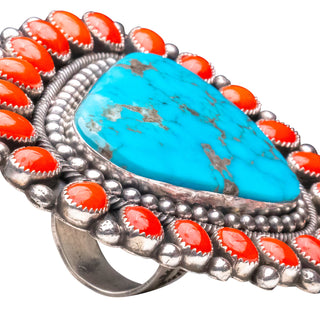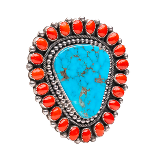Sterling silver with Kingman turquoise & coral ring