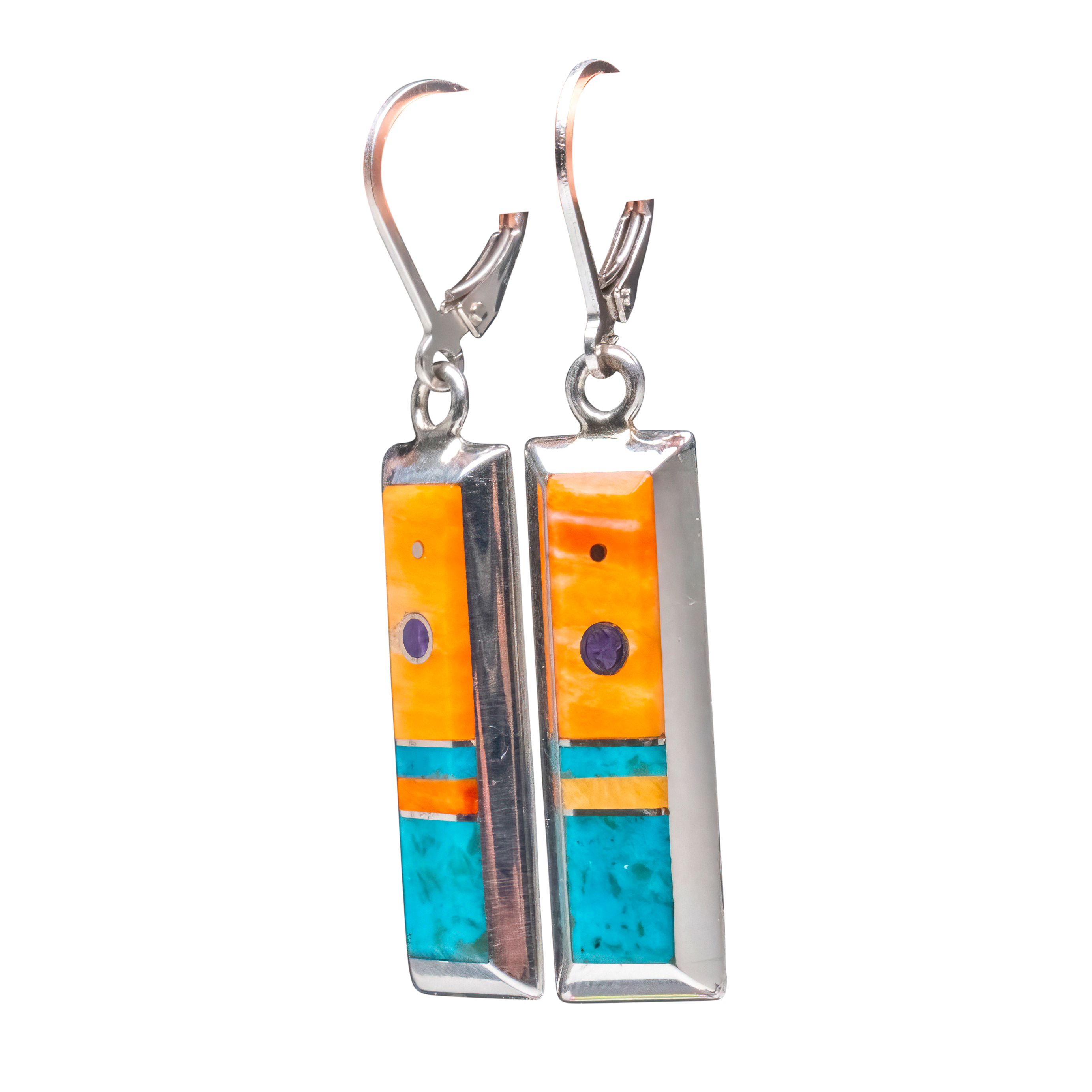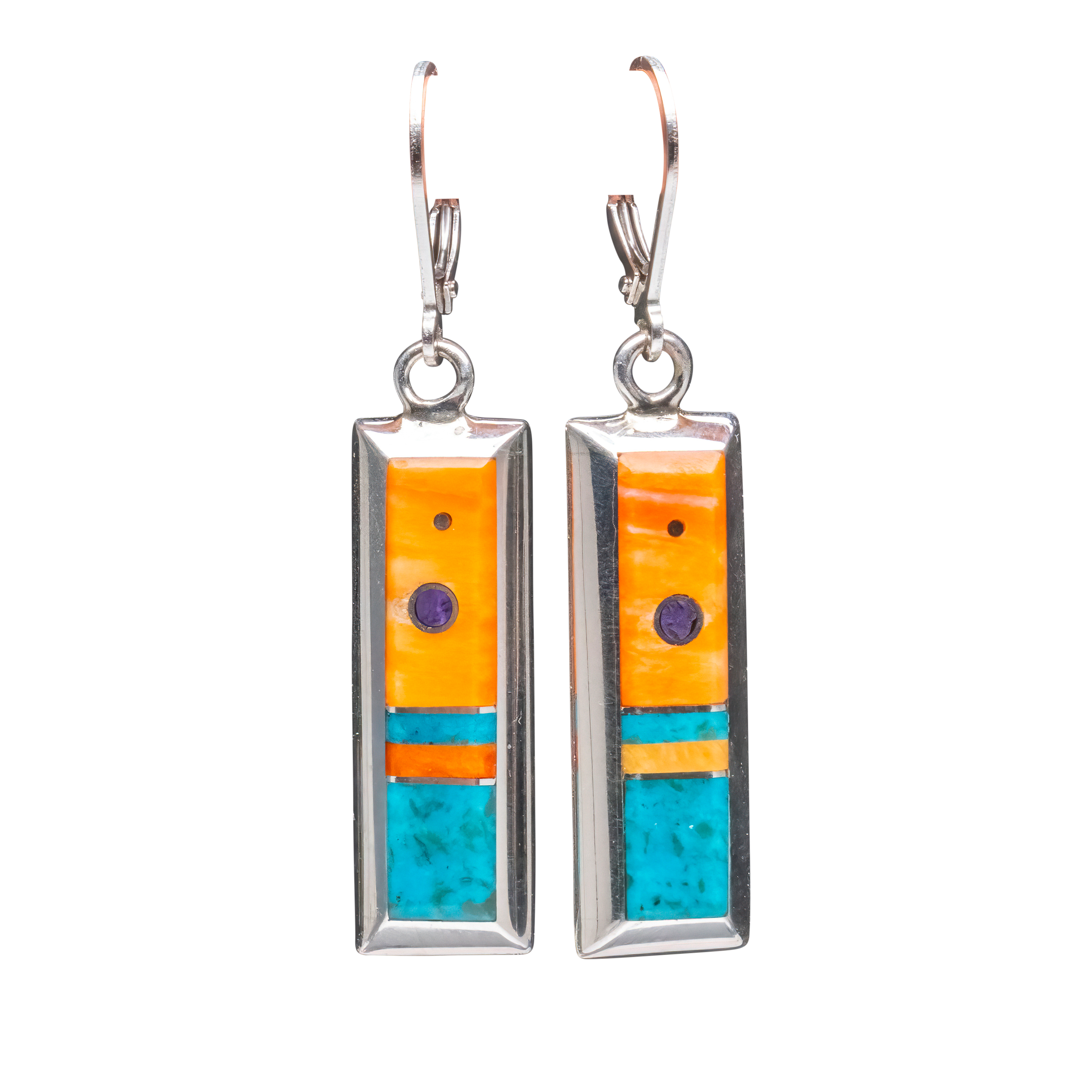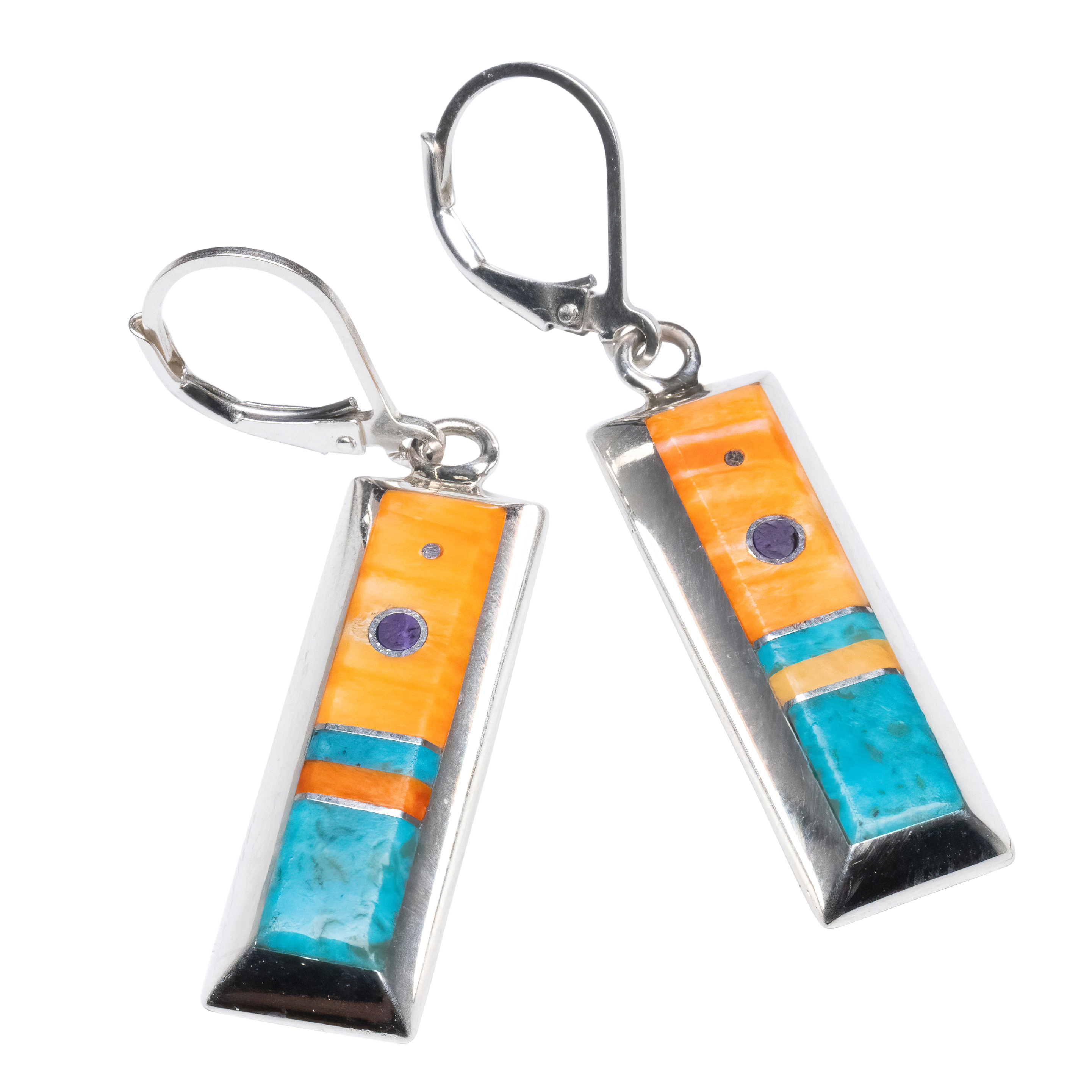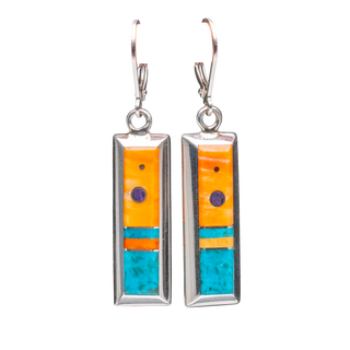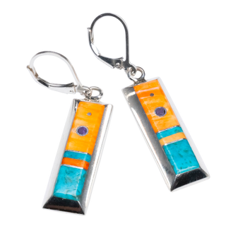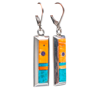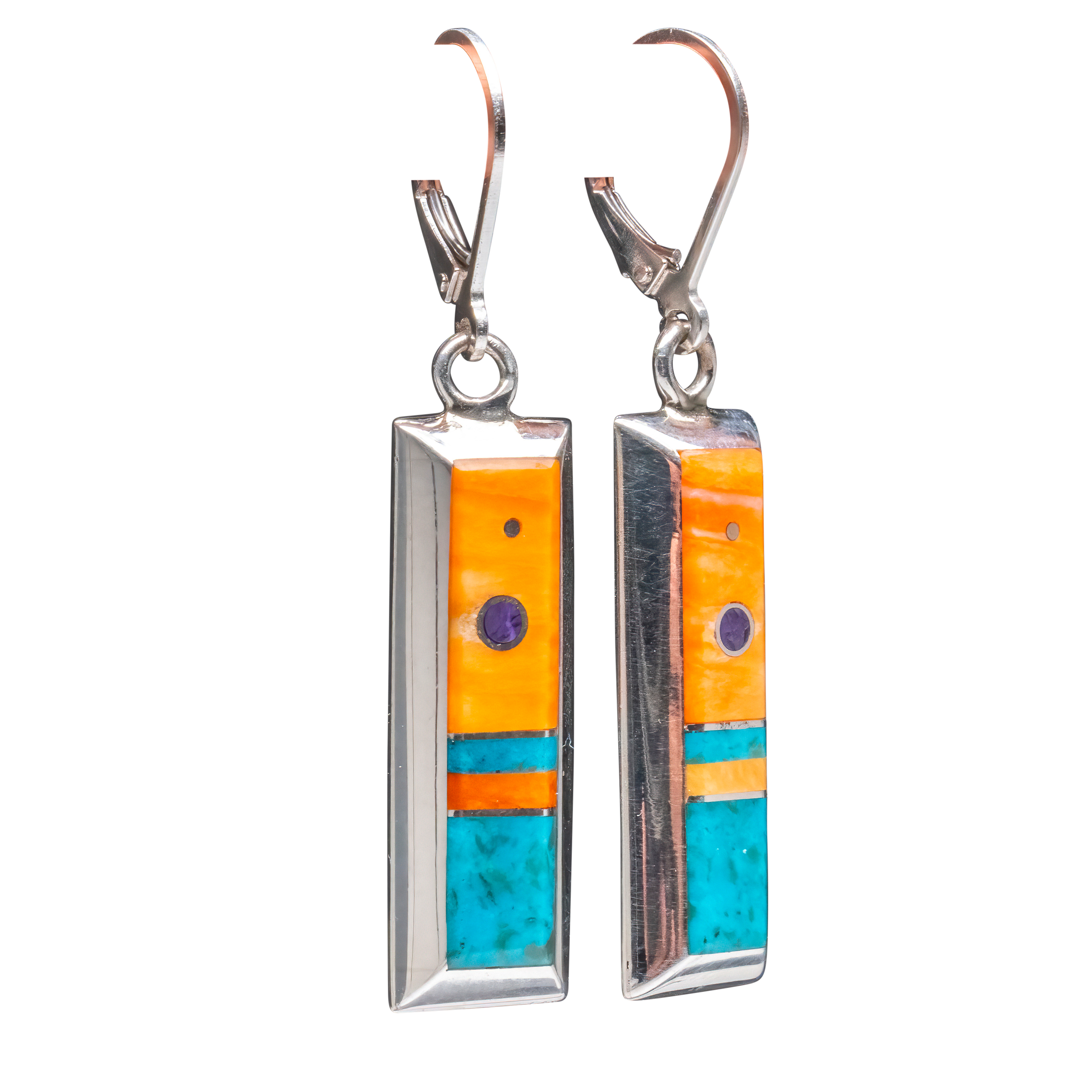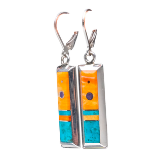 Sterling silver earrings inlaid with spiny oyster shell and Kingman turquoise