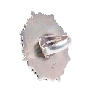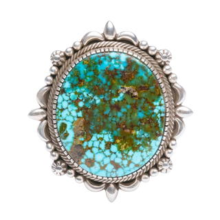 Elevate your jewelry collection with this exceptional Birdseye Kingman turquoise ring by artisan Marin Platero. Meticulously handcrafted, this ring showcases a rare and captivating Birdseye Kingman turquoise gemstone, celebrated for its distinct and intricate matrix pattern.