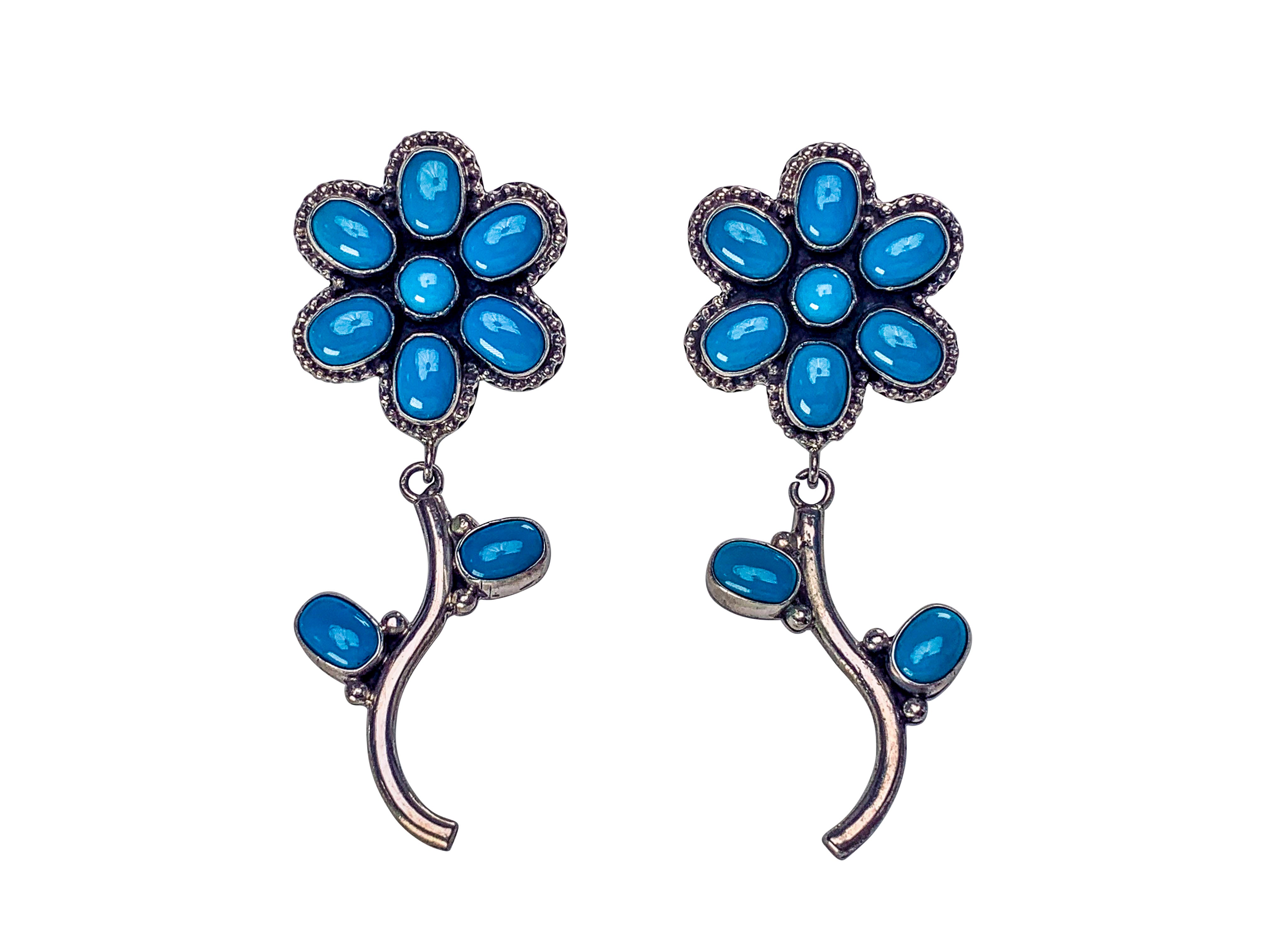 Sterling silver and Sleeping Beauty turquoise earrings, "SW" hallmark